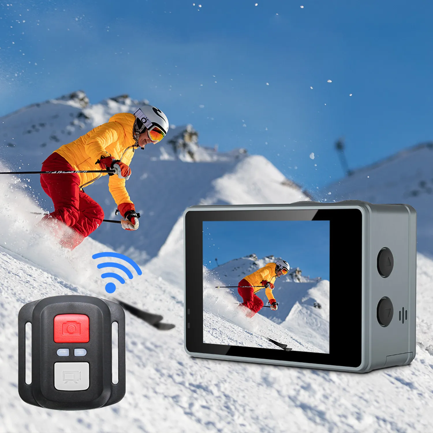Dedicated 2.4G Remote: Easily control the camera's photo and video functions at your leisure. Whether the camera is mounted on a helmet, handlebars, or used for group shots, you can start and stop recording with a single click.